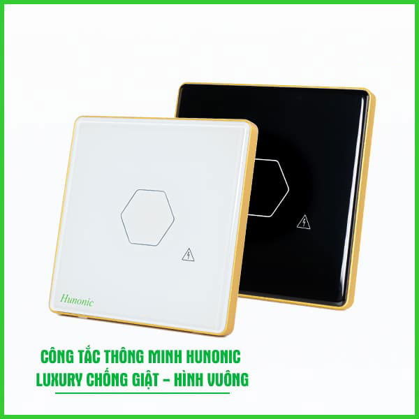 Công Tắc Hunonic Premium Hình Chữ Nhật Viền Vàng
